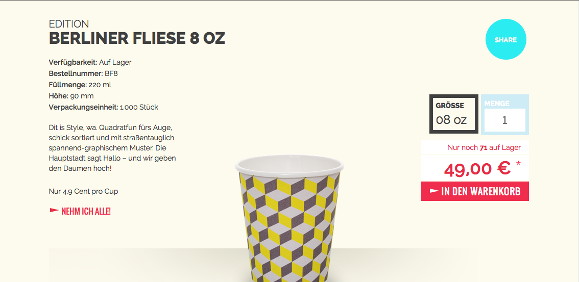 Freshes Startup aus Berlin, das To-Go-Becher bedruckt. Und ich durfte die Website zimmern.